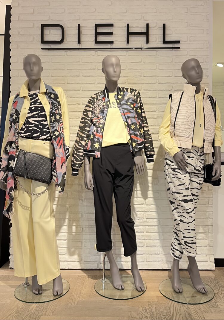 Die neuen Looks von Marc Cain verbinden ausdrucksstarke Prints mit soften Gelbtönen und sportiver Eleganz.